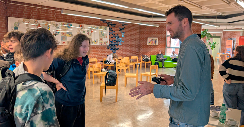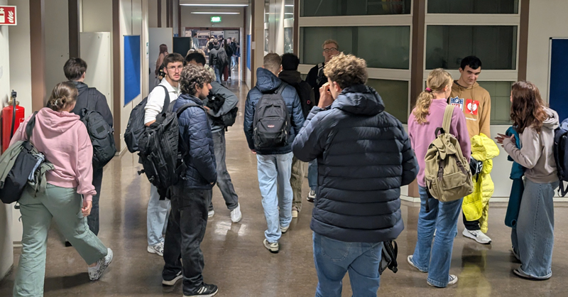 The Institute for Information Processing Technology (ITIV) was also represented as part of its cooperation with the school. Doctoral students Martin Sommer and David Kraus, both from Prof. Eric Sax's team, were available for personal discussions with the young people. Information sessions on choosing a course of study in the context of vocational training were offered in various rooms, while individual questions could be answered at the information stands in the foyer.